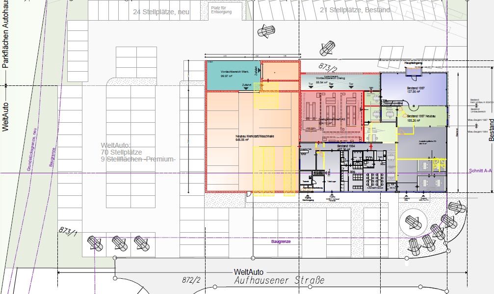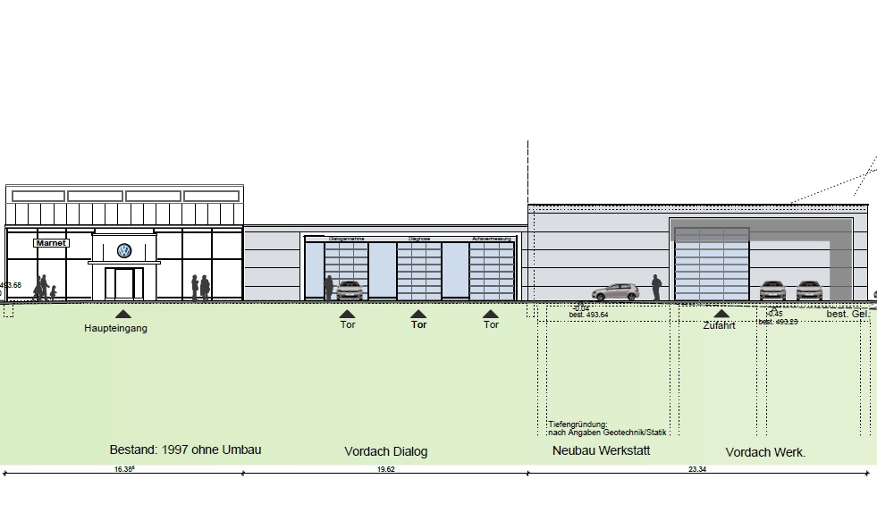 Umbau und Erweiterung Autohaus mit Werkstatt