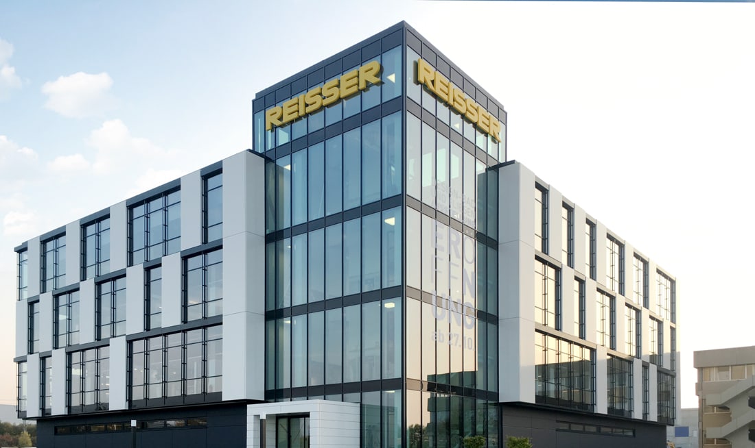 Das Verwaltungsgebäude mit dem prägnanten Eingang und der Ausstellungsfläche bildet den Kopf des neuen Ensembles. Die verschiedenen Lager- und Logistikhallen schließen lückenlos an und ermöglichen den direkten Austausch.