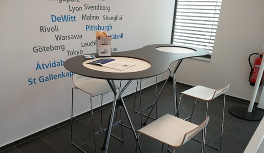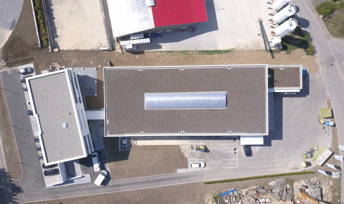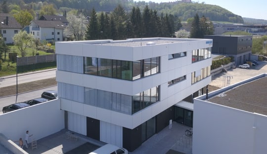 Durch die Anordnung der Gebäude wird das Grundstück optimal ausgenutzt: Das 3-geschossige Verwaltungsgebäude ist teilweise in den Hang integriert.
