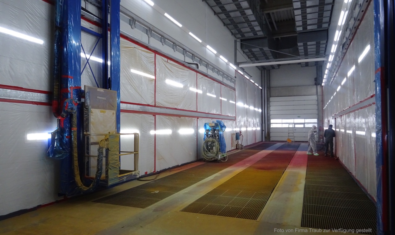 Im neuen Lackierzentrum für Großfahrzeuge werden riesige staubfreie Lackierkabinen mit neuester Absauge-Technik sowie Gruben mit Hubautomatik eingebaut.