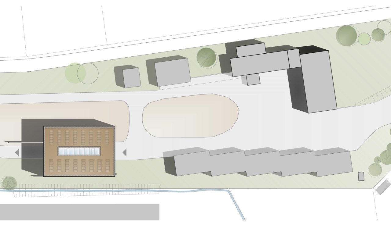 Die neue Lagerhalle der Landeswasserversorgung in Essingen dient der Aufbewahrung spezieller Rohre für die Trinkwasserleitungen. Im Innenraum sind 2 Krananlagen mit jeweils 10t Kapazität vorgesehen. Ein großes zentrales Oberlicht sorgt für natürliche Belichtung. Die Halle wird in Fertigteil-Bauweise errichtet, um eine schnelle Bauzeit zu ermöglichen. Isopaneele an der Fassade und eine Photovoltaik-Anlage auf dem Dach gewährleisten eine gute Energiebilanz.