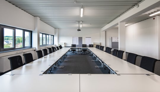 Der Verwaltungstrakt befindet sich neben dem Eingangsbereich und ist über das Foyer erreichbar. Hier befinden sich Büros, Besprechungszimmer, Aufenthaltsräume und Ausstellungsflächen.