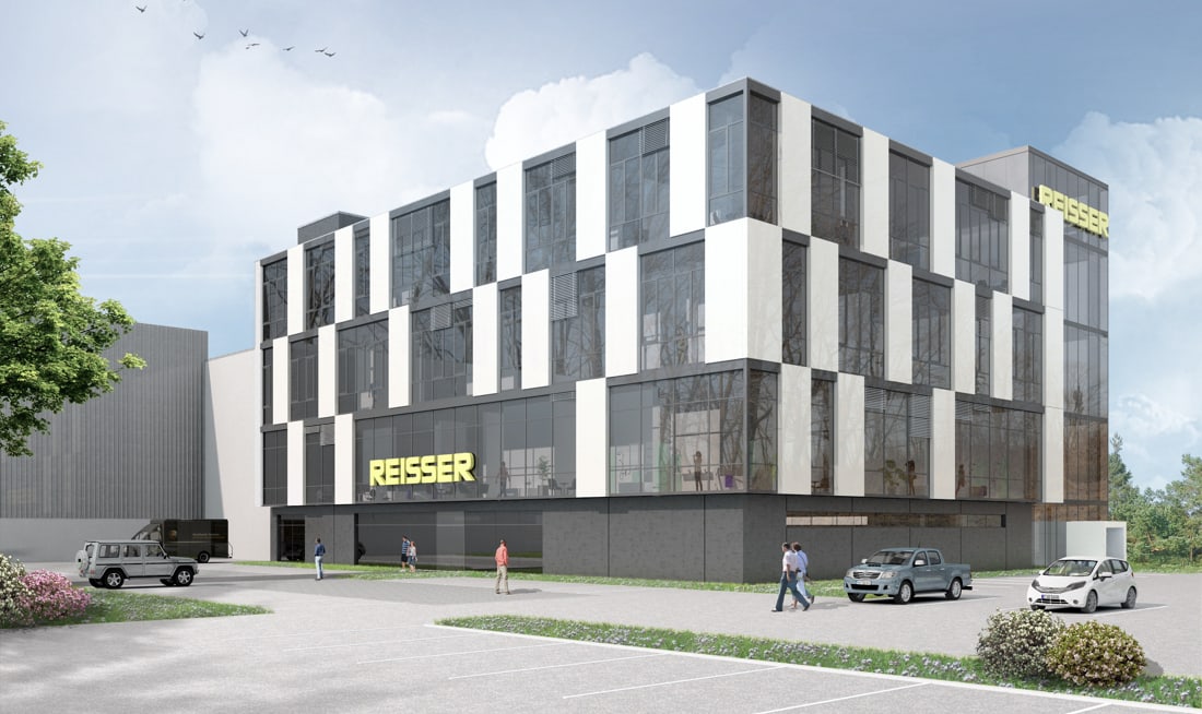 Das Verwaltungsgebäude mit dem prägnanten Eingang und der Ausstellungsfläche bildet den Kopf des neuen Ensembles. Die verschiedenen Lager- und Logistikhallen schließen lückenlos an und ermöglichen den direkten Austausch.