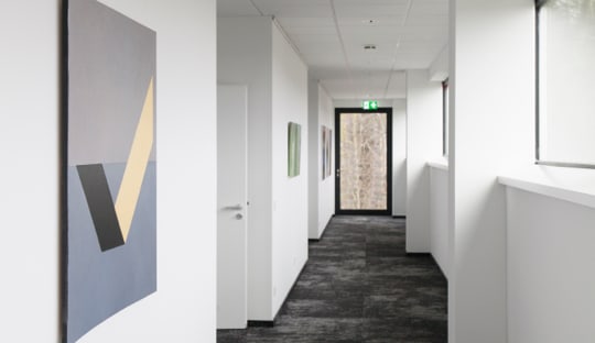 Klares Design der Räume ergänzt durch Kunst/Grafik an den Wänden und kombiniert mit wertigen Materialien bestimmen das Innere des Gebäudes.